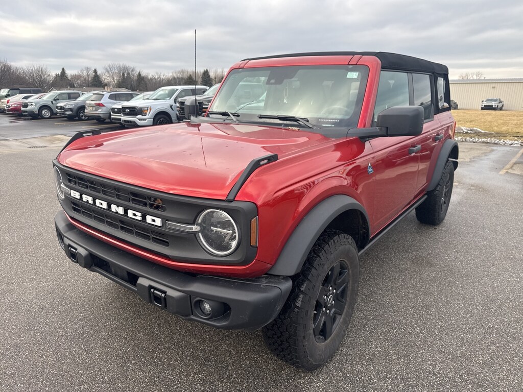 Finished in Chili Pepper Red, this Bronco is powered by a 2.7L EcoBoost V6 paired with a 10â'Speed Automatic transmission, offering a confident and refined driving experience both on and off the road. EPAâ'rated at 18/18 MPG (City/Highway), it balances power with efficiency for everyday usability.