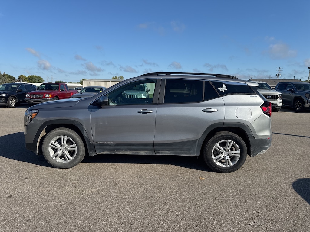 This Sterling Metallic 2024 GMC Terrain SLE AWD is a CARFAX One-Owner SUV with a clean CARFAX history, offering excellent value and reliability. Powered by a 1.5L DOHC turbocharged engine paired with a 9-speed automatic transmission, it delivers strong performance with impressive efficiency at 23 MPG city / 28 MPG highway.