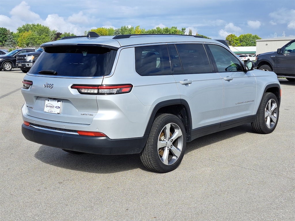 Clean CARFAX. This Silver Zynith 2021 Jeep Grand Cherokee L Limited 4WD blends luxury, space, and performance in one of Jeepâs most versatile three-row SUVs. Powered by the 3.6L V6 engine paired with an 8-speed automatic transmission, it delivers smooth power, confident capability, and excellent efficiency at 18 city / 25 highway MPG.